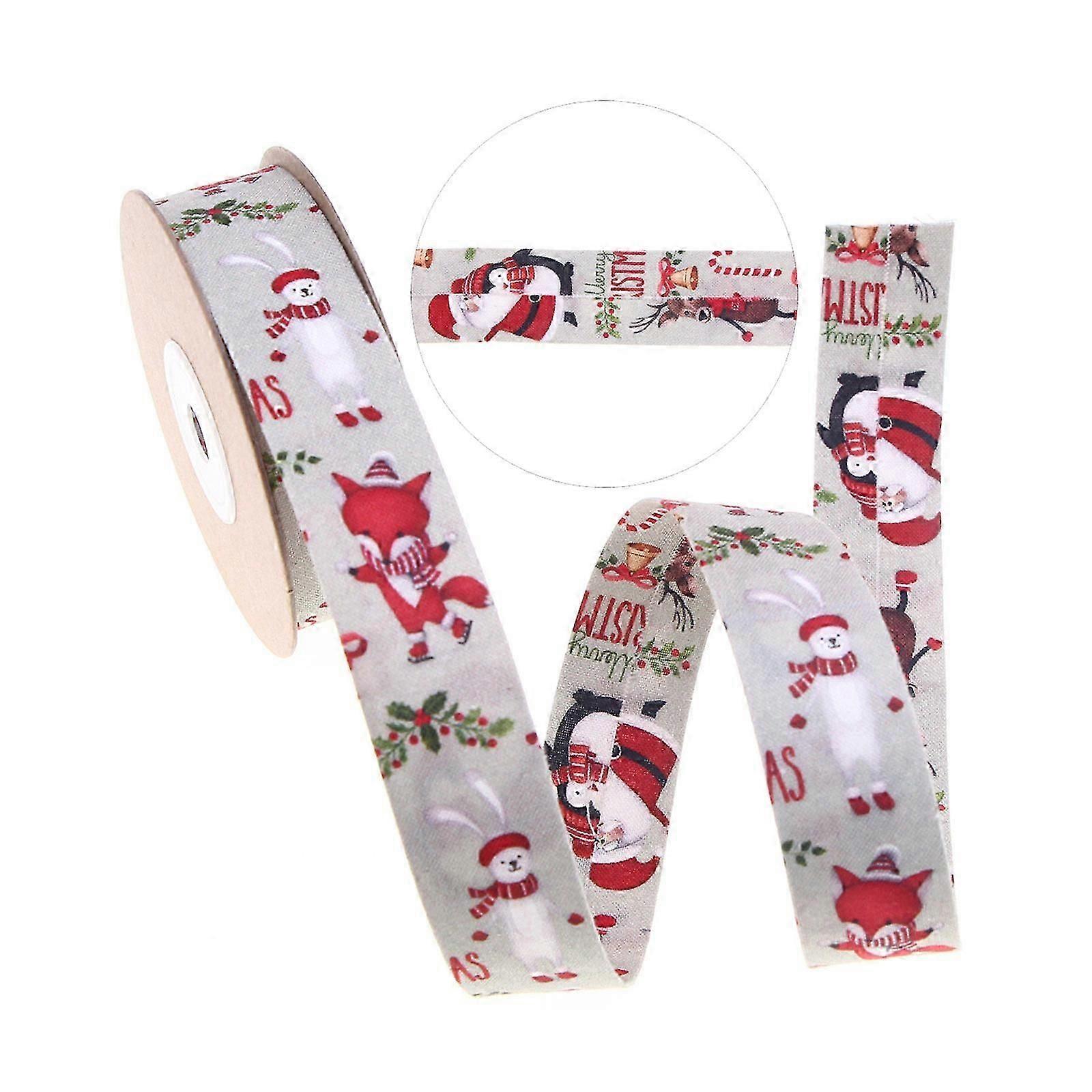 25mm Christmas Ribbon Printed Cotton Ribbons DIY Handmade Bowknot Ornament Gift Wrapping Packing Christmas Decoration White