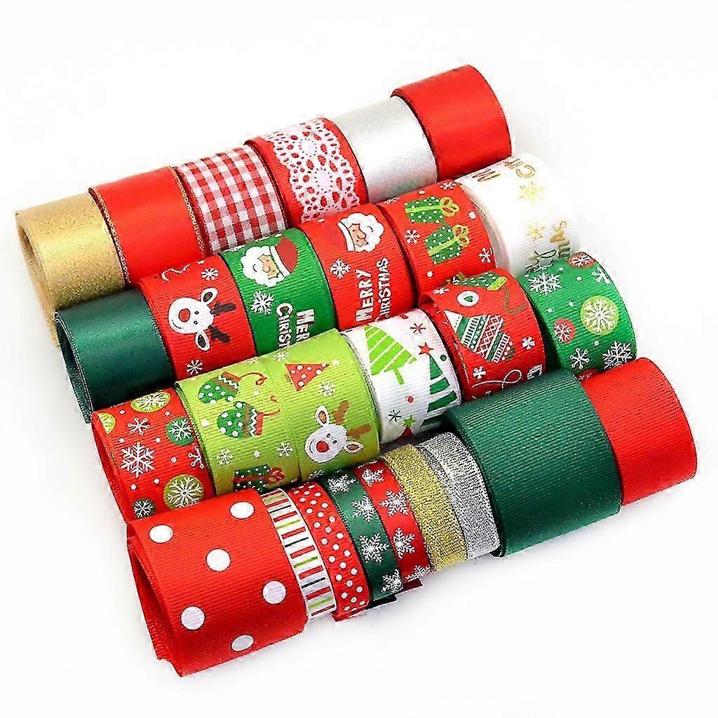27 Rolls Christmas Ribbon Christmas Grosgrain Ribbon Wrapping Ribbon for Holiday Bows Gift Wrapping, 0.4 Inch, 1 Inch and 1.5 Inch