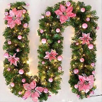 27m Christmas Tree Garland Artificial Christmas Rattan Christmas Decoration with Lamp Indoor Outdoor for Home Fireplace - PINK