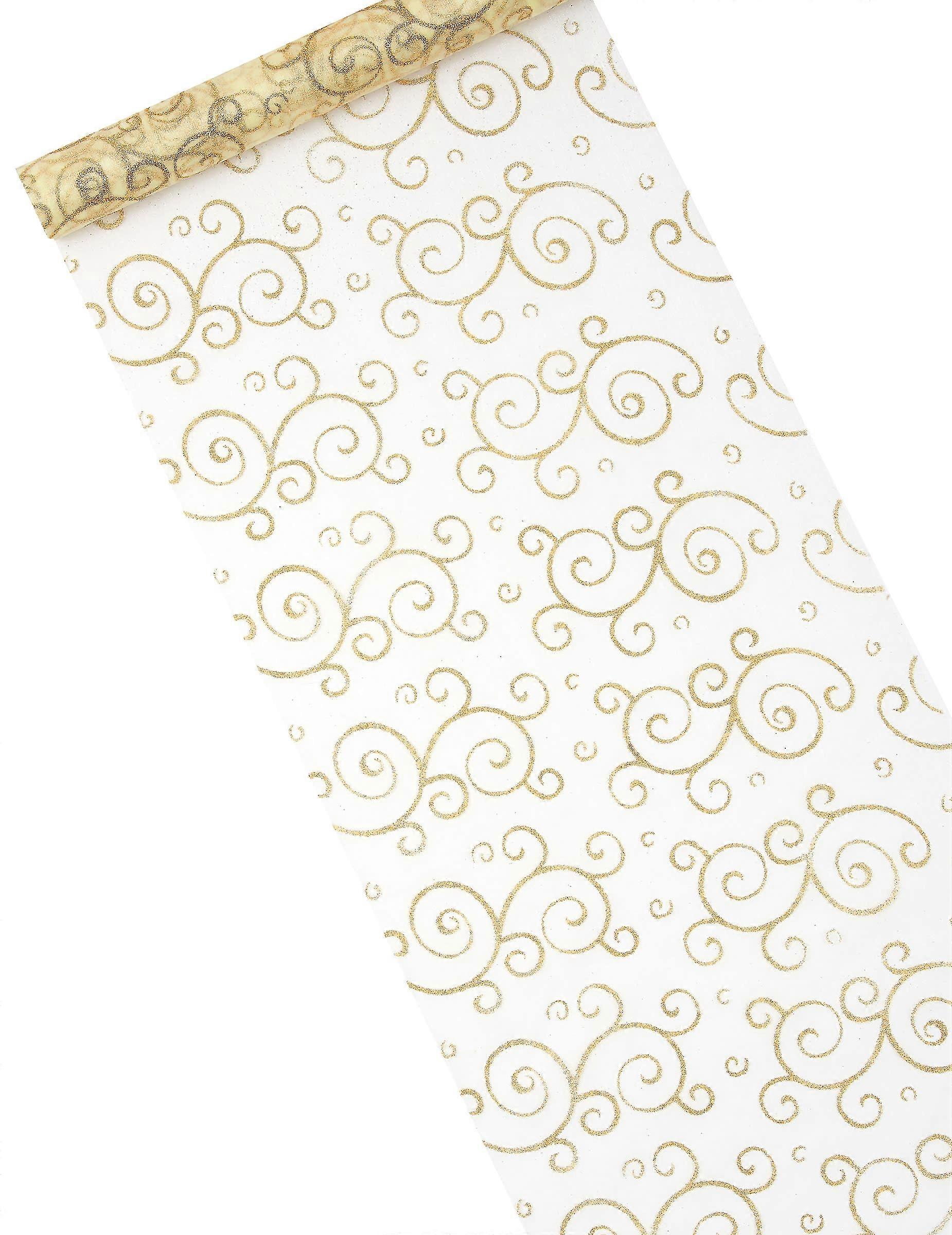 Chemin de table organza doré arabesques pailletées 28 cm x 5 m