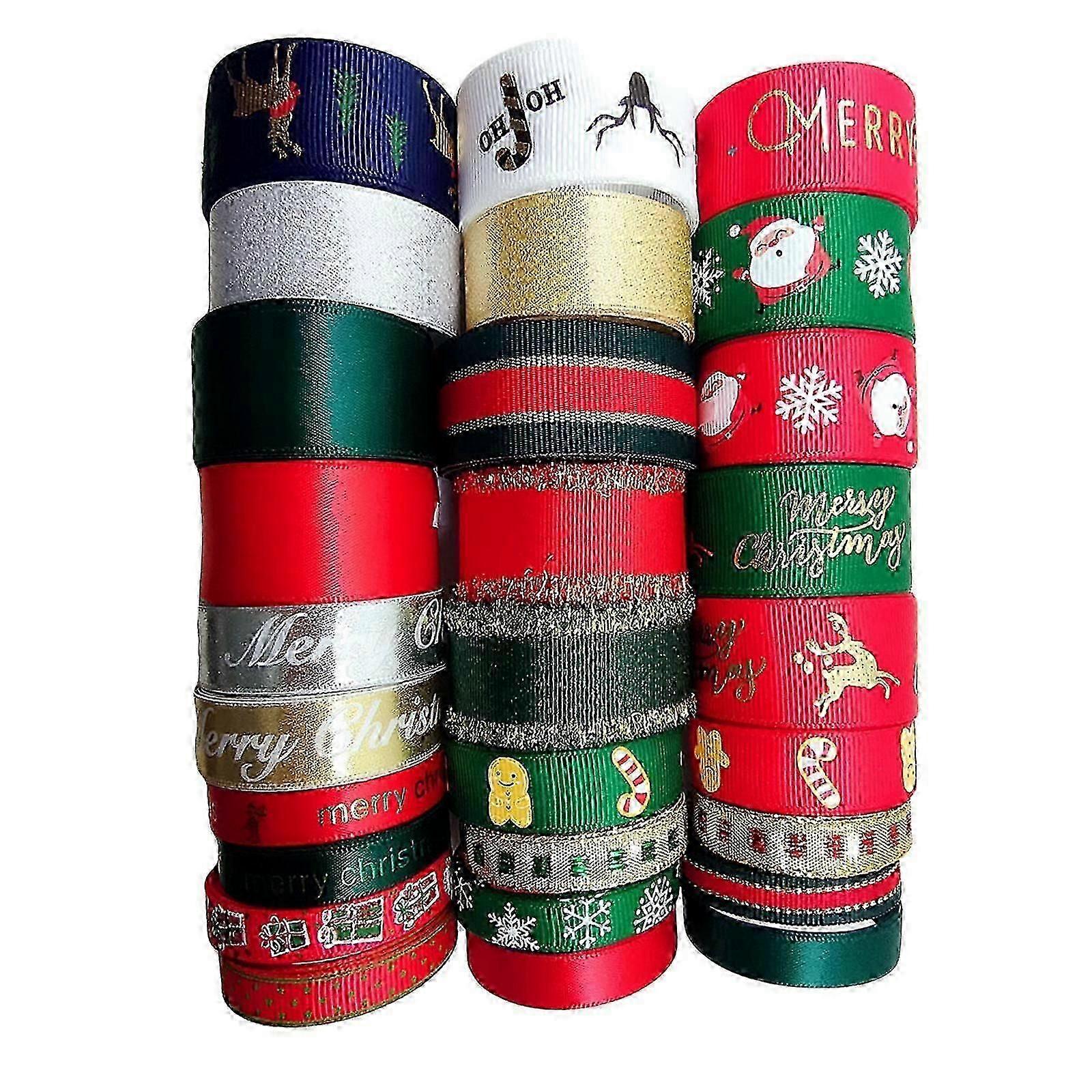 28 Pieces Christmas Ribbon Combo for Holiday Gift Wrapping Package Decor
