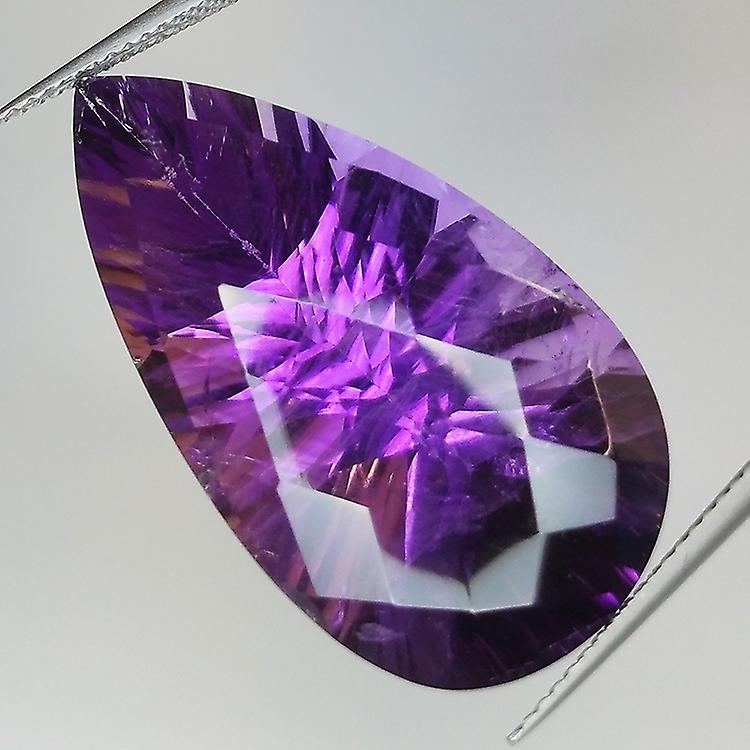 29.44ct Amethyst Millenium Pear Cut With Checkerboard 30.4x16.7mm awo60