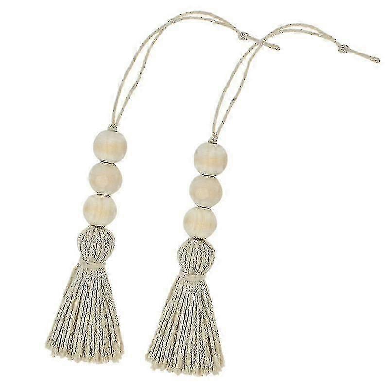 2pc Cotton Line Tassel Wood Beads Decor Hanging Rope Closet Door Handle Decoration bd
