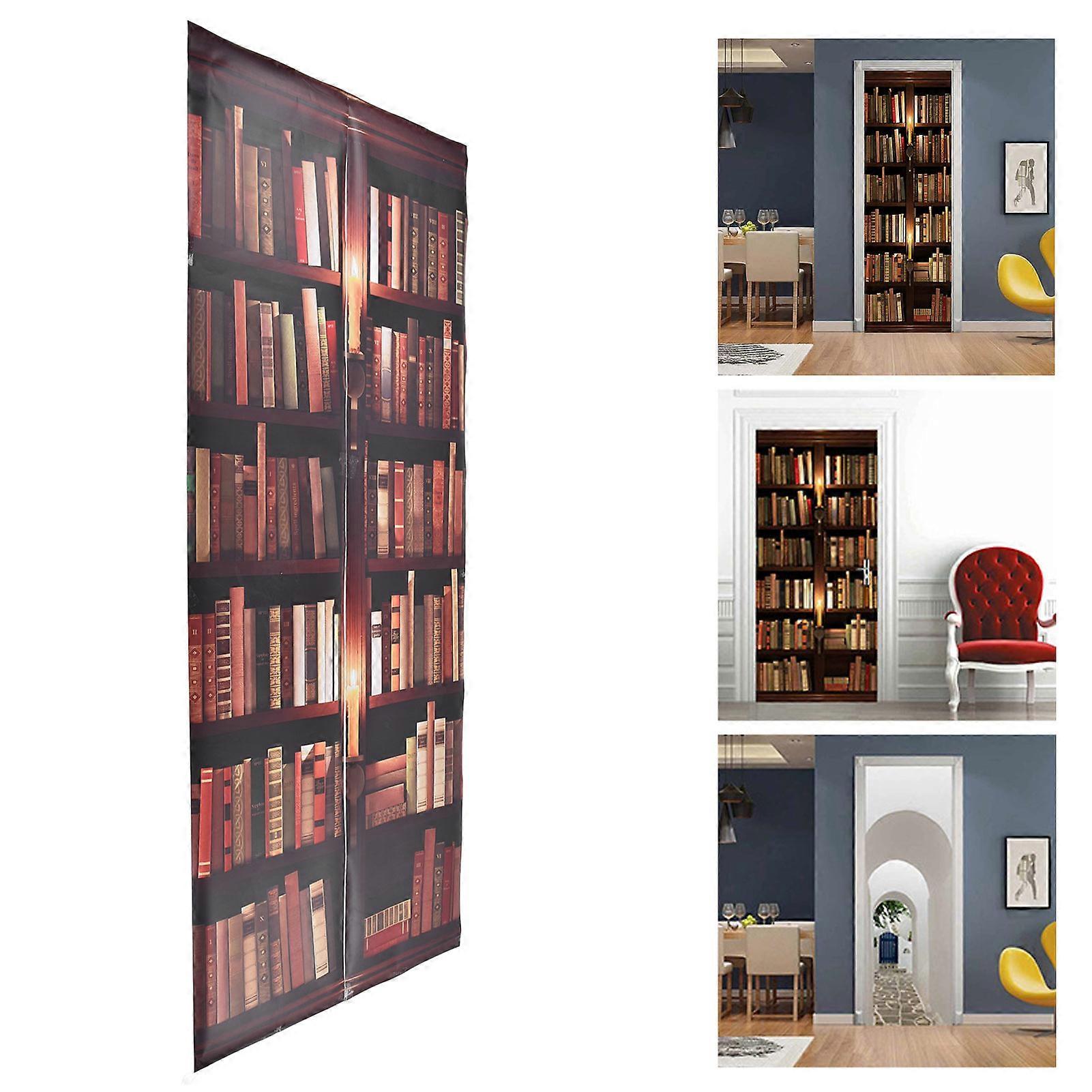 2Pcs 3D Door Sticker Bookshelf Style,15x78, Wall Sticker Decor for Living Room Decoration