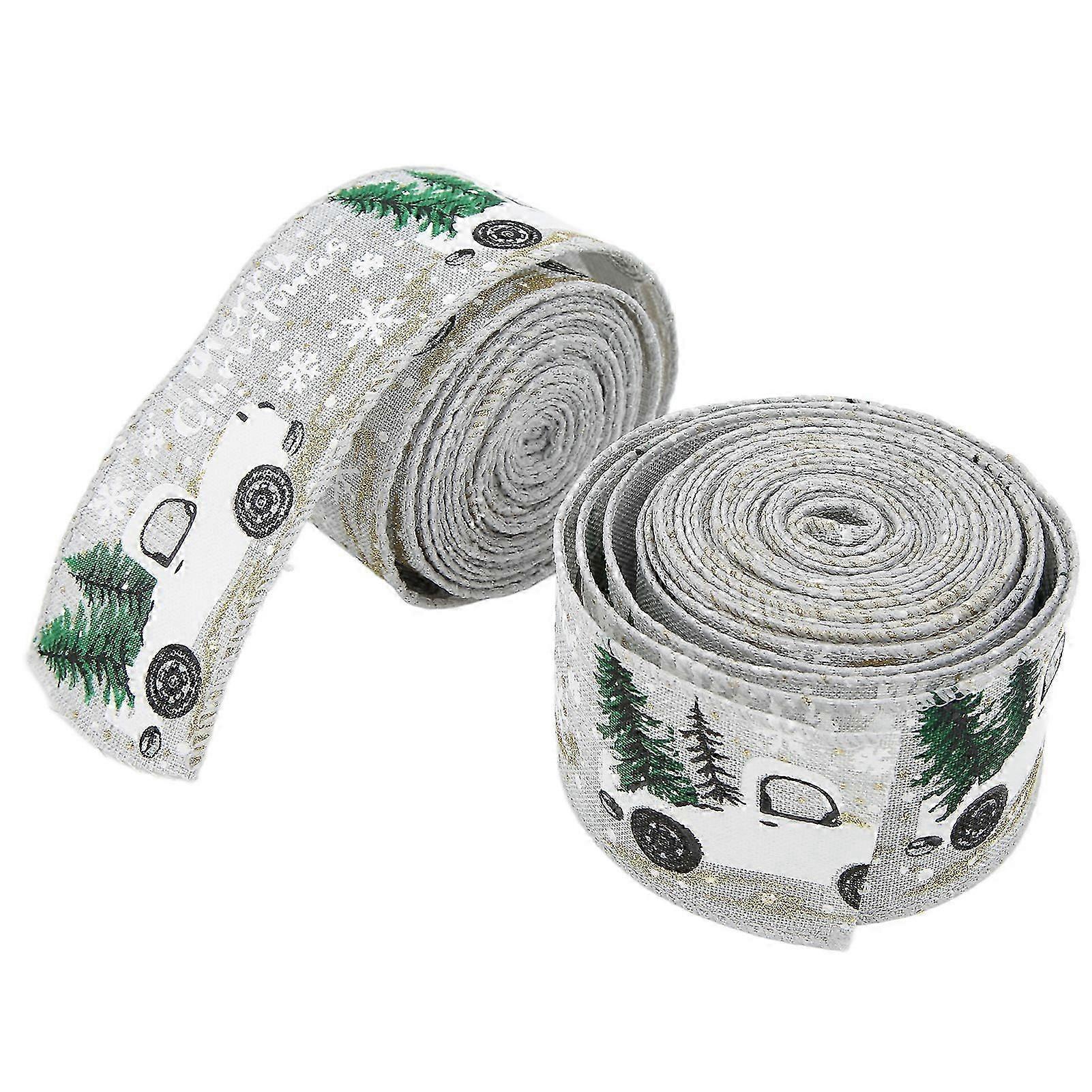 2Pcs 5 Meter Gray Christmas Ribbons with Retro Truck Pattern