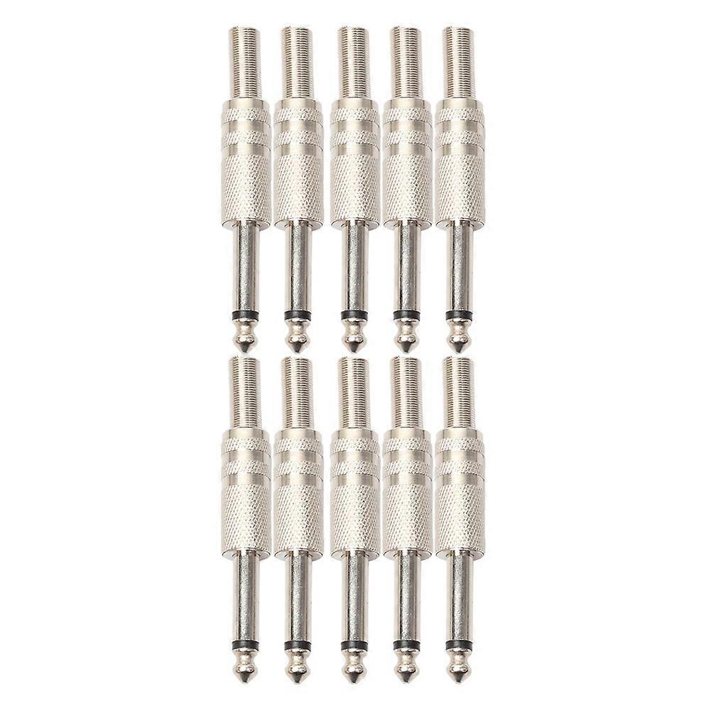 . High Quality Nickel-Metal Clad 1/4" 6.35mm Male Mono Connector Plug. The 6.35mm (1/4") Jack plug is suitable for fixing to the ends of speaker instruments, runs guitar wires, makes your own custom instrument wires. Soldered terminals. Mono type connector. Material: Metal Size: Approx. 75 x 15mm / 2.95" x 0.59" (L * Dia.)Quantity: 4Package List: 4 x Mono JackNote: Please refer to the measurement. A small measurement error is acceptable within the normal range. There may be a slight color difference due to monitor, camera or other factors, please refer to the