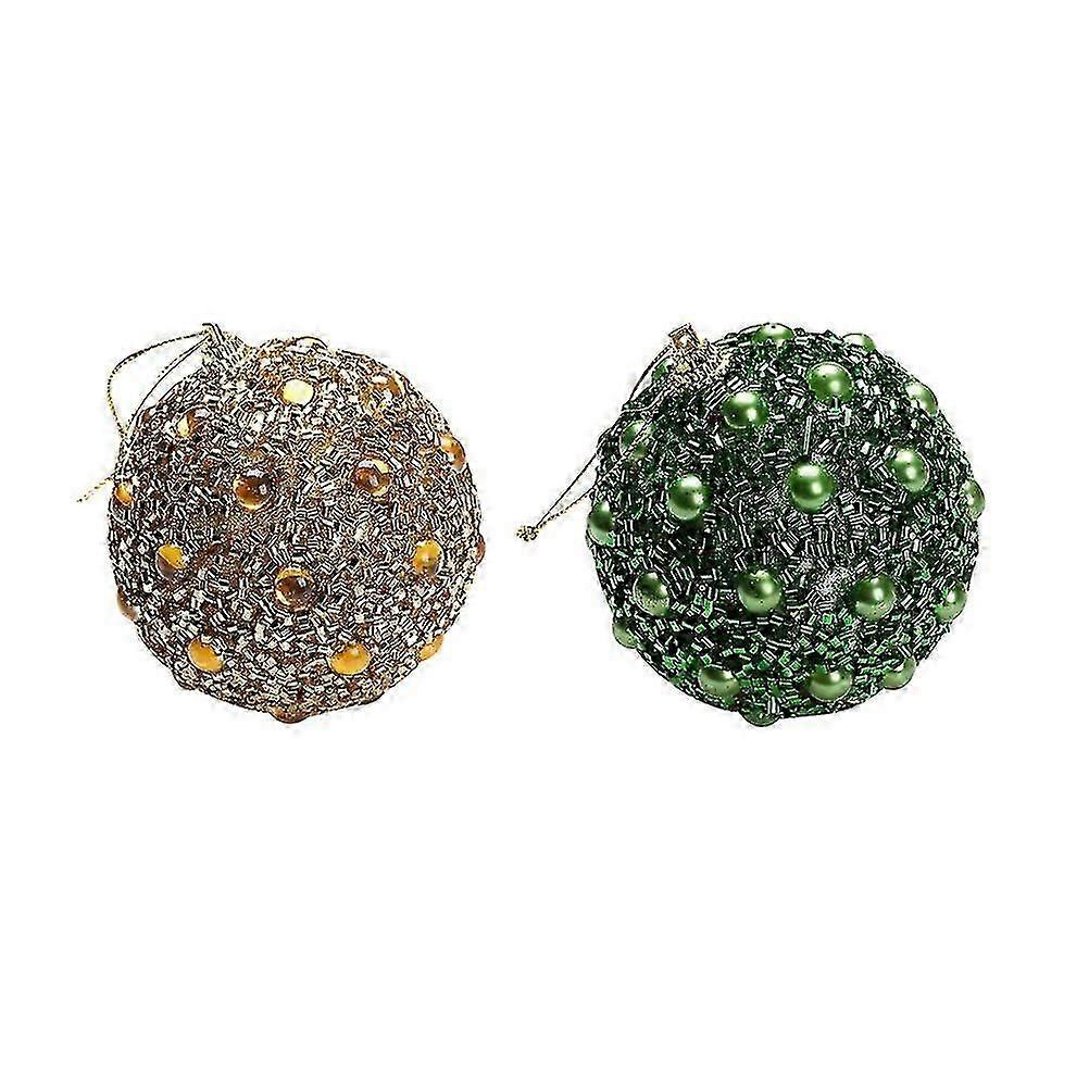 2pcs 8cm Christmas Ornament Christmas Ball Pearl Gold Powder Christmas Ball Christmas Tree Pendant Holiday Layout (golden + Green)