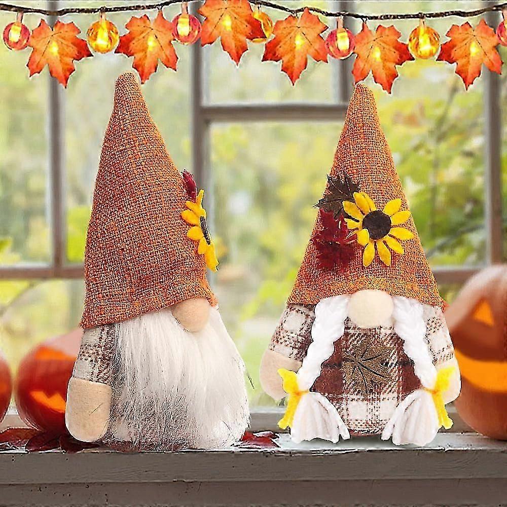 2Pcs Autumn Indoor Decorations Fall Decor,Autumn Faceless Gnomes with Sunflower,Dwarf for Farmhouse Holiday Home Kitchen Halloween Party Ornaments