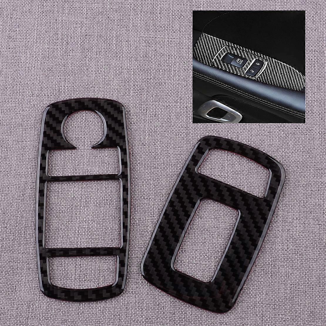 2Pcs Black Carbon Fiber Front Left Right Window Lift Switch Button Cover Fits Dodge Challenger 2015 2016 2017 2018-2020
