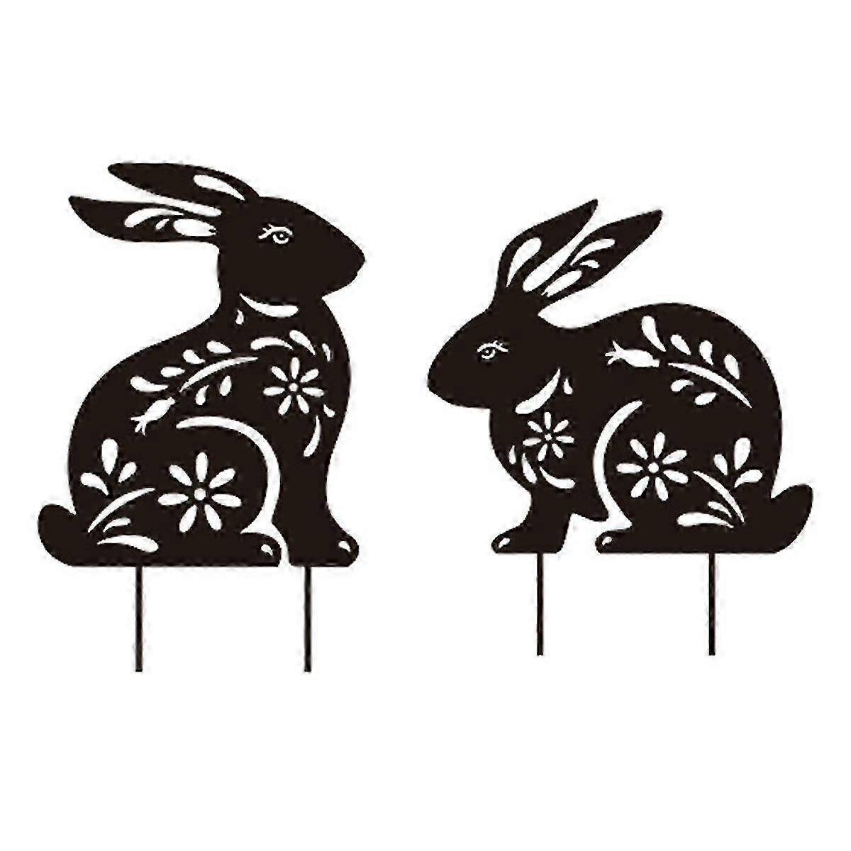 2Pcs Bunny Garden Stakes Metal Bunny Stakes Metal Garden Rabbit Decorations Statues Rabbit Silhouet-YuJia