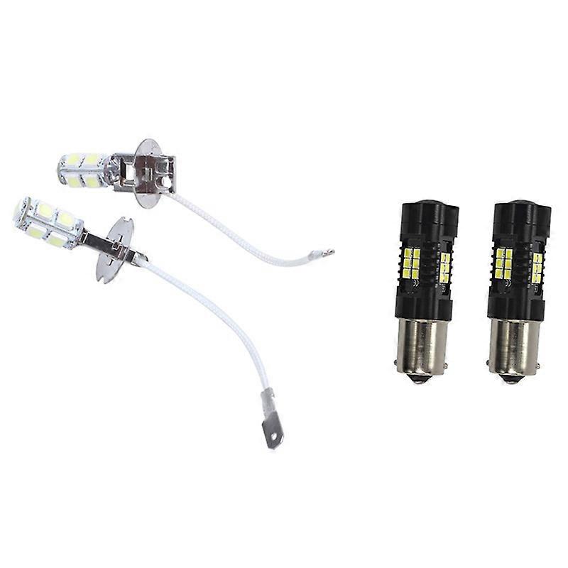 2Pcs Car H3 Socket 9 White 5050-SMD LED Fog Lights Fog Lights DC 12V with 2Pcs Products 1156 BA15S Car LED Fog Lights