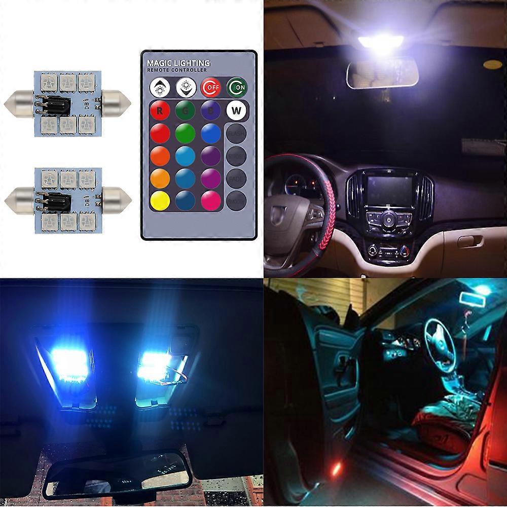 2Pcs Car RGB 5050 6SMD 39mm Festoon Roof Dome Light C5w Door Auto Remote Control Colorful Trunk Lamps Decorative Bulbs