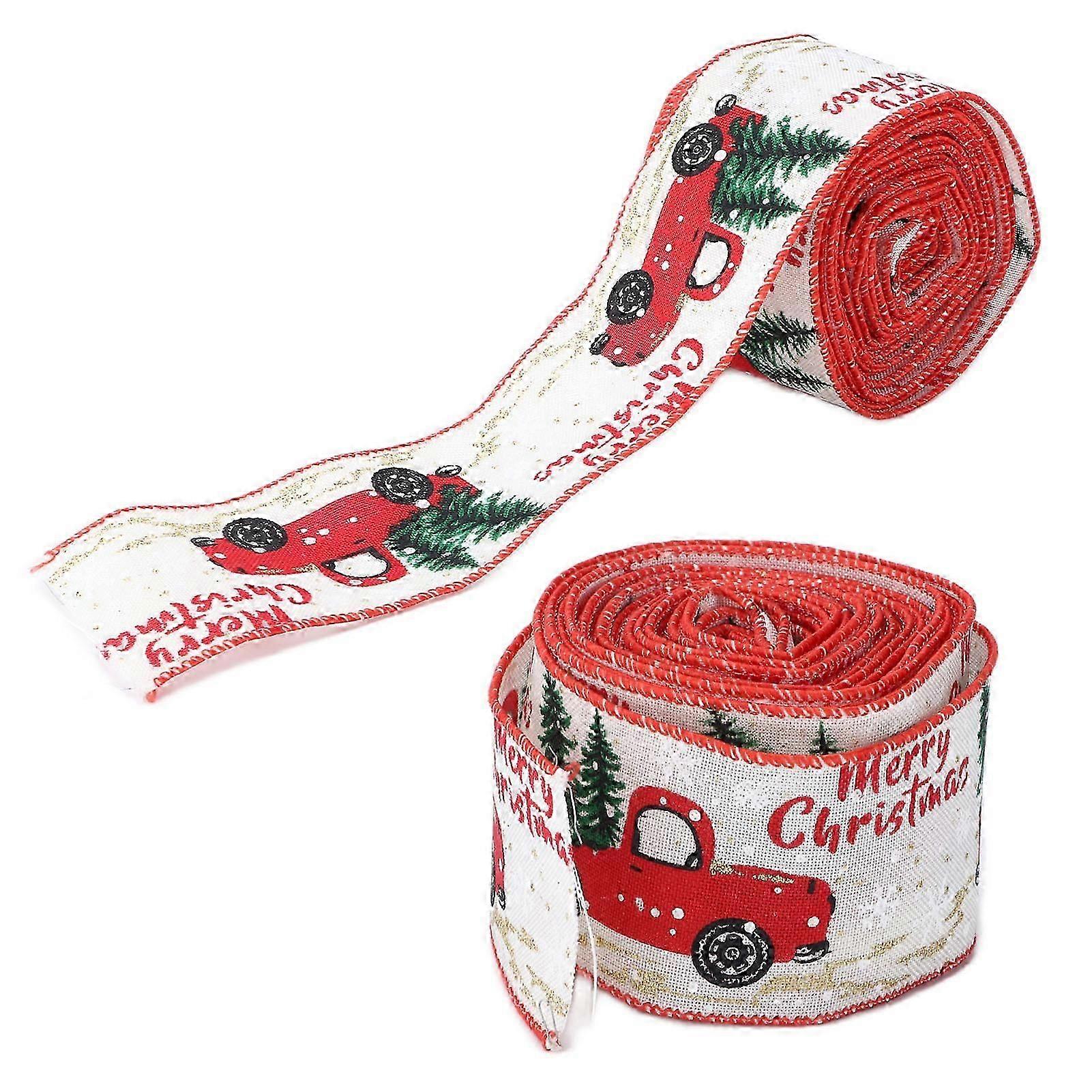 2pcs Christmas Decoration Ribbon Clear Vivid Pattern Durable Packaging Ribbon for Gift Wrapping