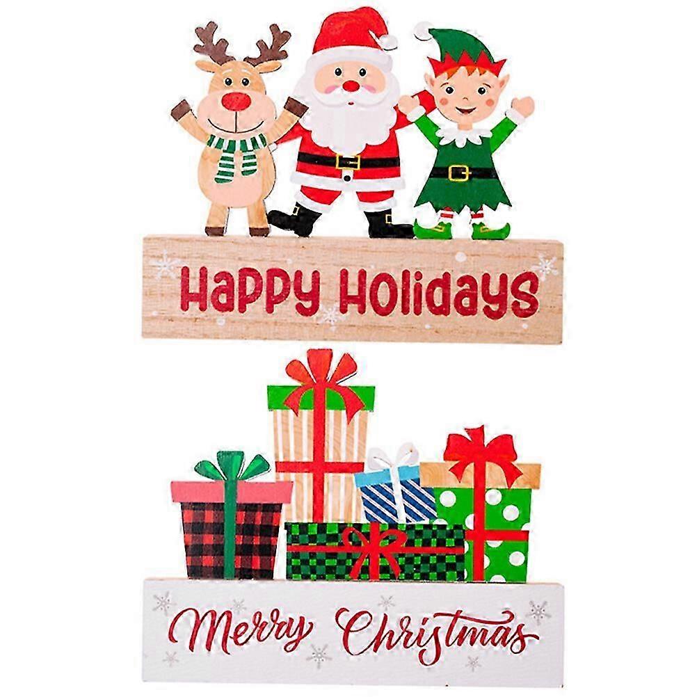 2pcs Christmas Ornament Desktop Decoration Wooden Sign Decor Wooden Craft Holiday Ornament