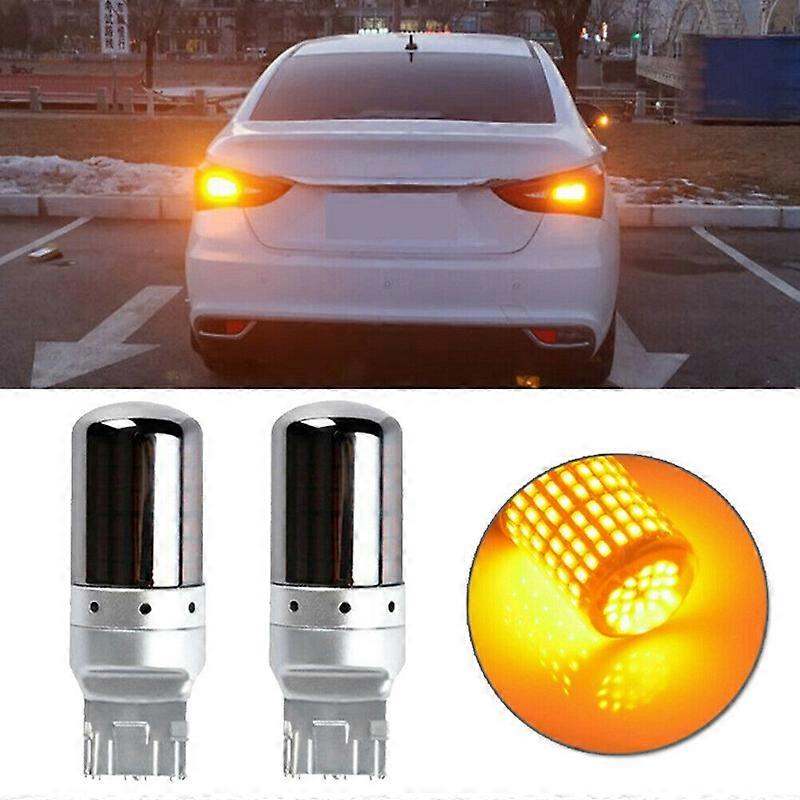 2pcs Chrome 7440 T20 144SMD Amber Error Canbus Free LED Bulb Turn Signal On