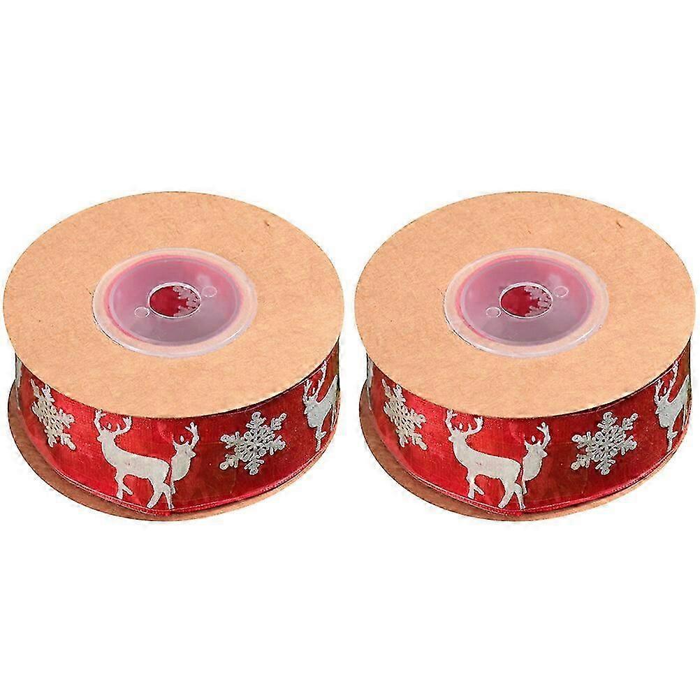 2pcs Gift Floral Packing Ribbon Christmas Silk Ribbon Gift Wrapping Grosgrain