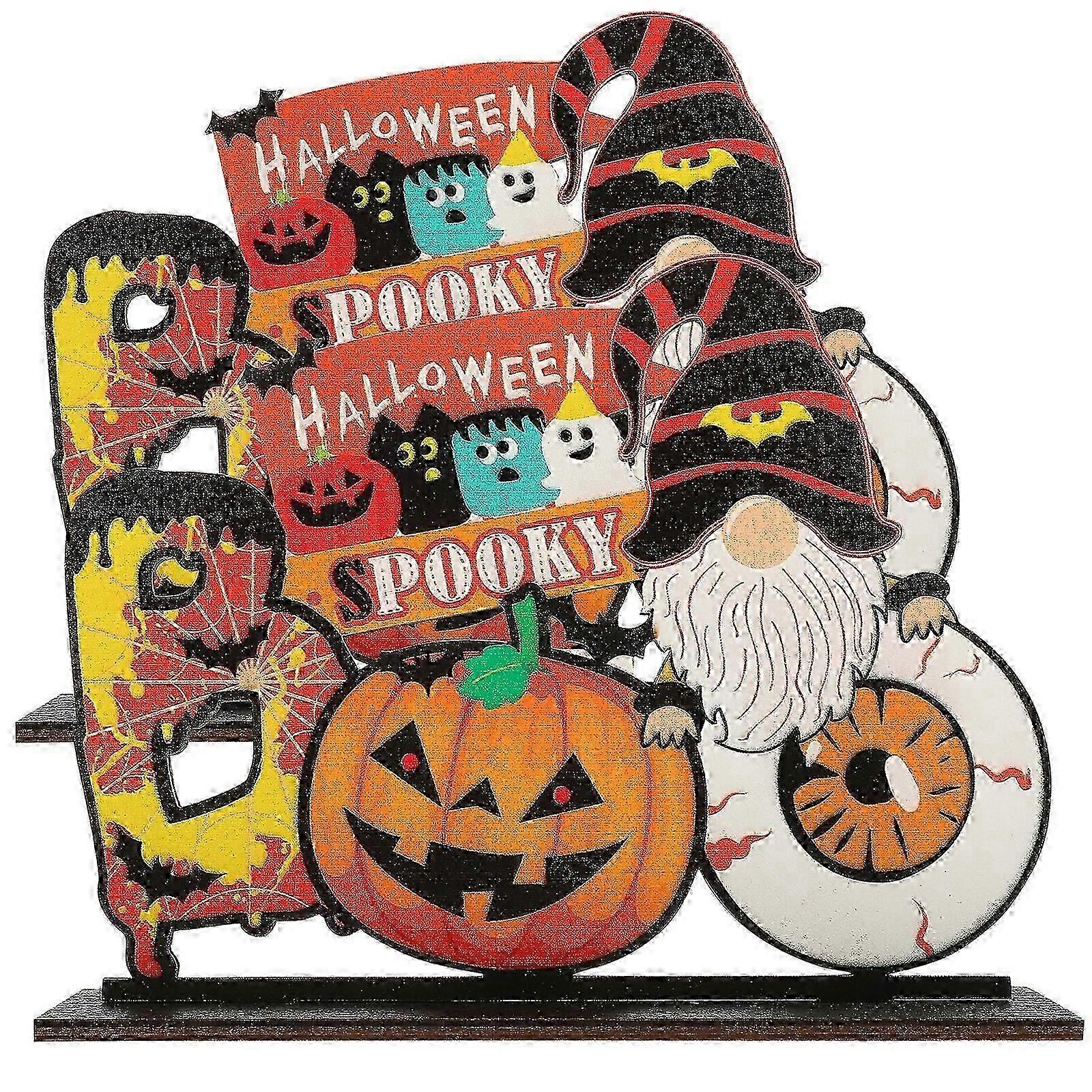 2Pcs Halloween Table Centerpiece Decorative Halloween Party Decoration Wooden Table Sign