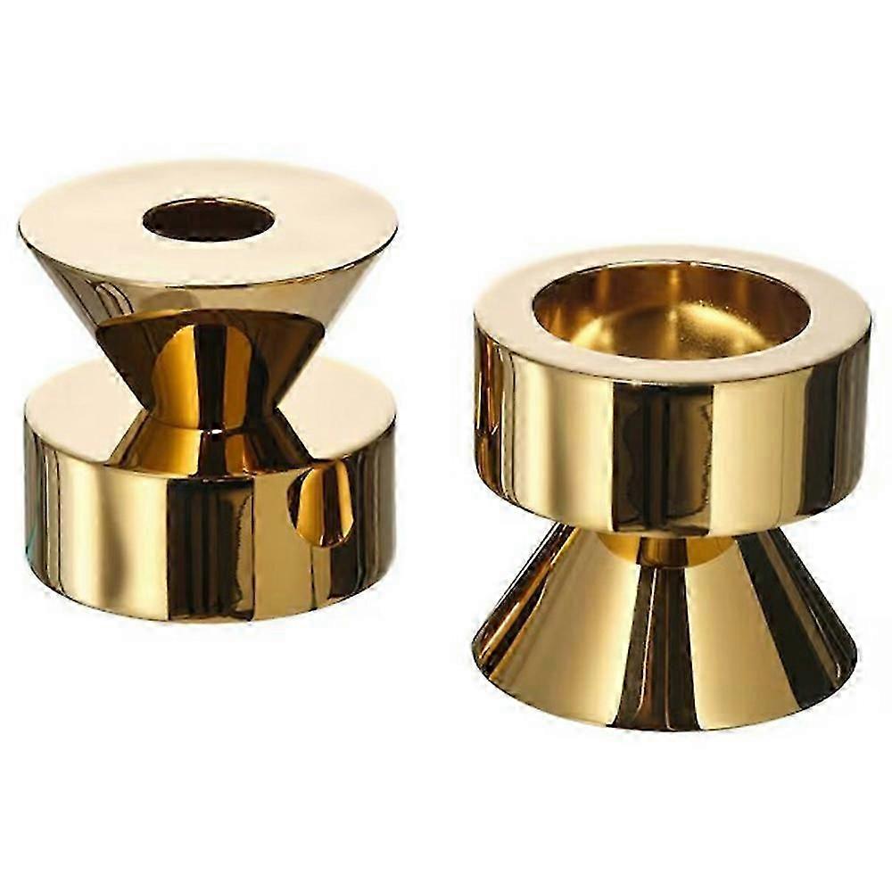 2Pcs Metal Candle Holder Round Base Dining Table Bedroom Study Tealight Candle Stand - Brass Color