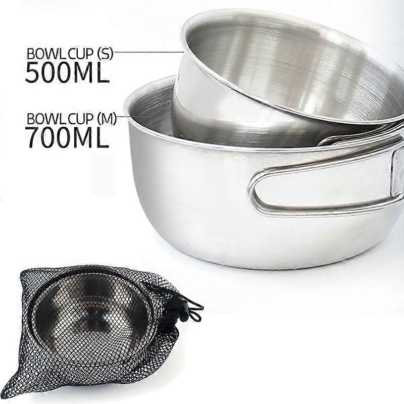 2Pcs Outdoor Stainless Steel Folding Bowl Travel Suite Mug Multifunction Camping Meal Cooking Utensils Pots & Pans Set