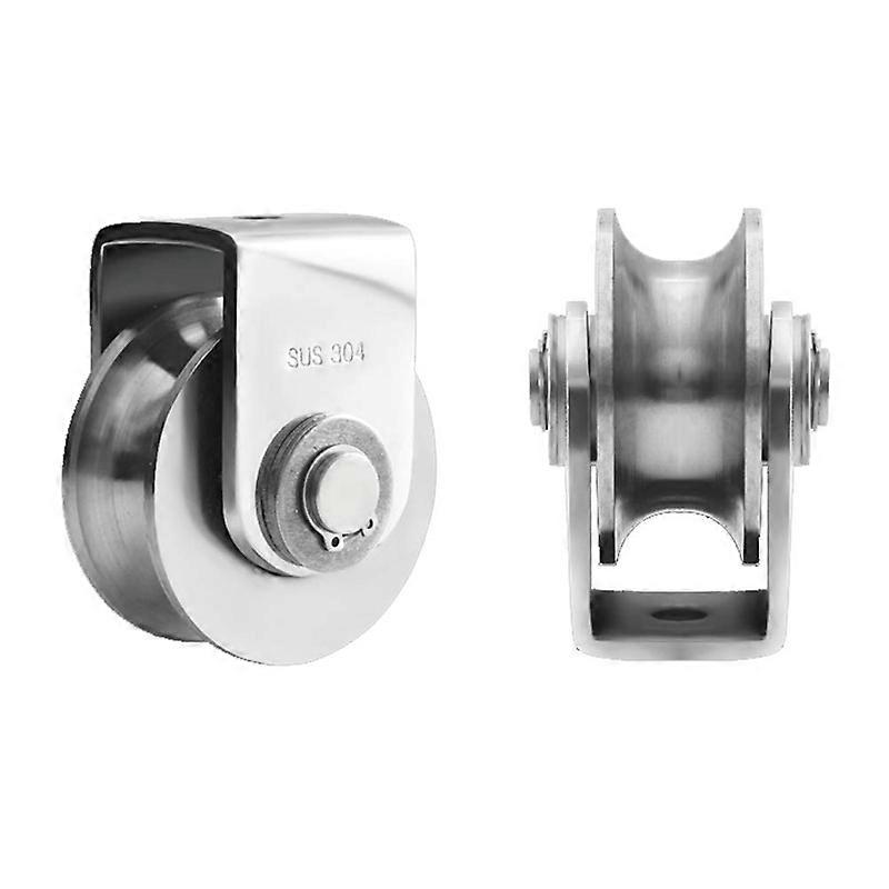 2Pcs Pulley U 304 Stainless Steel Pulley Pulley Rollers Duplex Having Silent Detachable Heavy Duty Grooved Loading Wheels