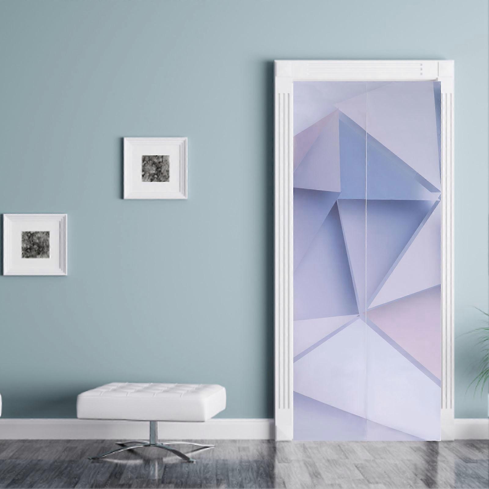 2Pcs Sticker Geometric Style 3D Frosted Texture Wall Sticker Decor Door Poster for Home (15.2 x 78.7in)
