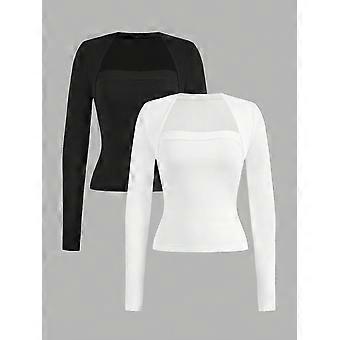 2pcs Women Casual Solid Color Versatile Long Sleeve T-Shirt, Suitable For Autumn/Winter