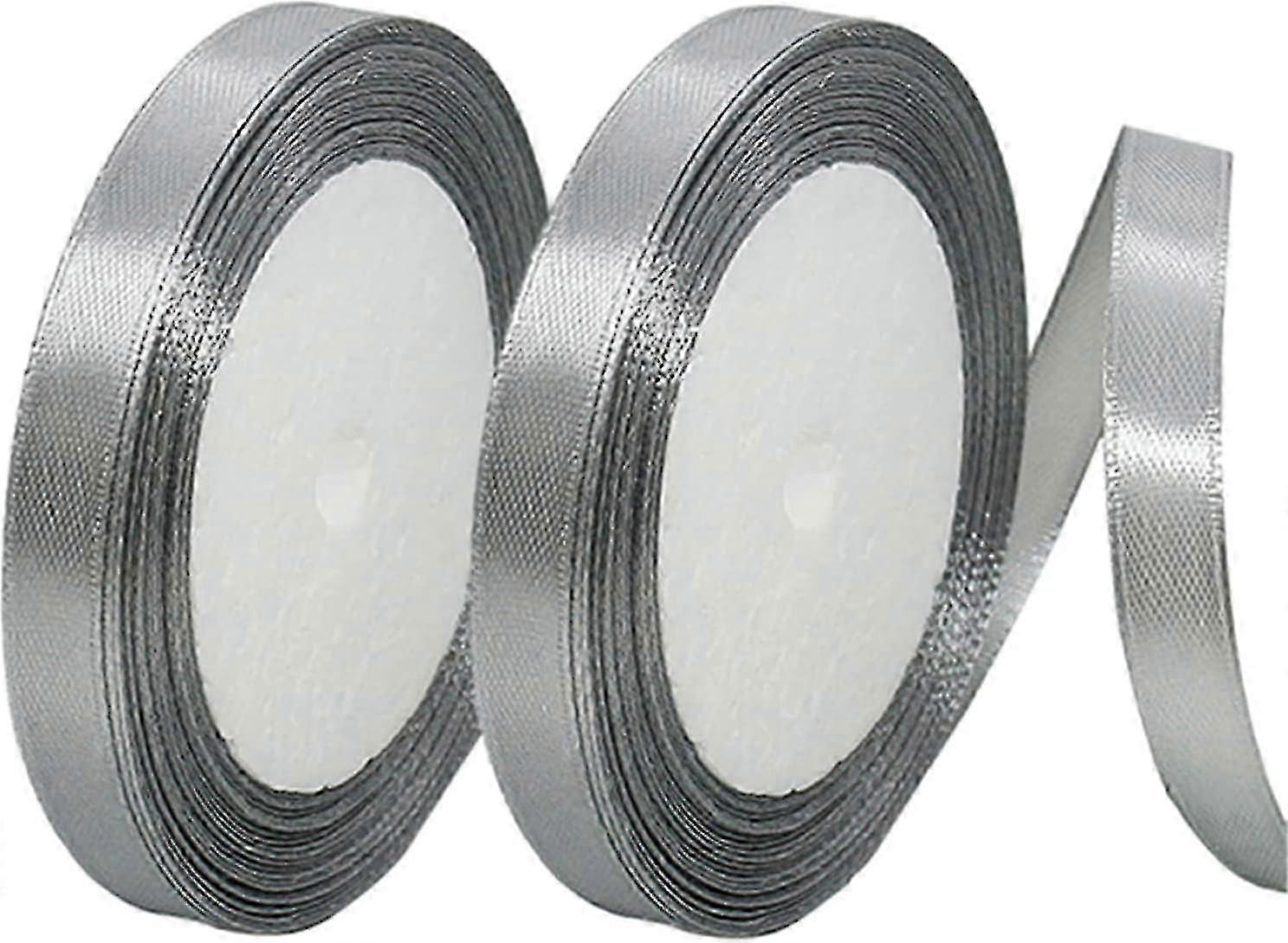 2Rolls 22m Silver Grey Silk Satin Fabric Ribbon,10mm Polyester Double Sided Satin Ribbon,Balloon Ribbon Valentine Ribbon Christmas Ribbon for Wedding