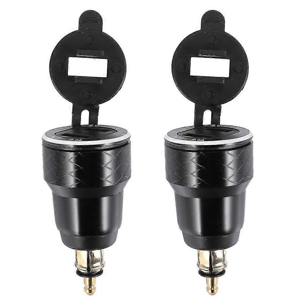 2x Dual 5v 2.1a Din To Usb Adapter,aluminum Alloy European Motorcycle Usb Charger For Motorcycle/ph