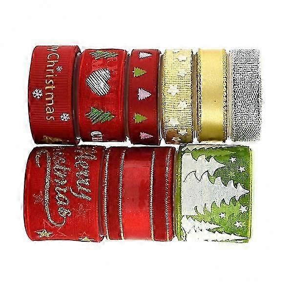 2x 9 Styles Christmas Ribbon for Crafts Grosgrain Satin Fabric Ribbon Wired