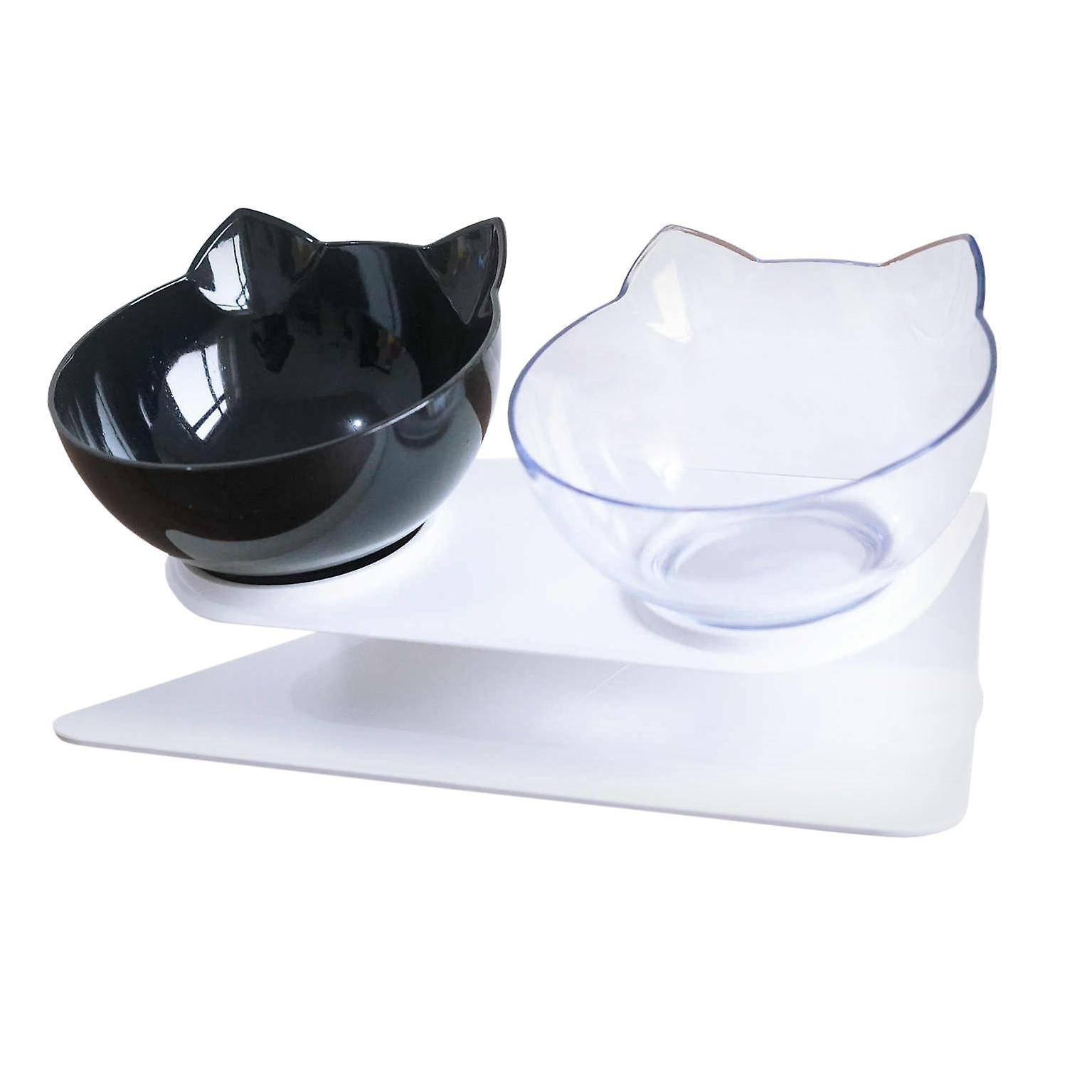2x Ergonomiska Kattskålar - Svart/Transparent