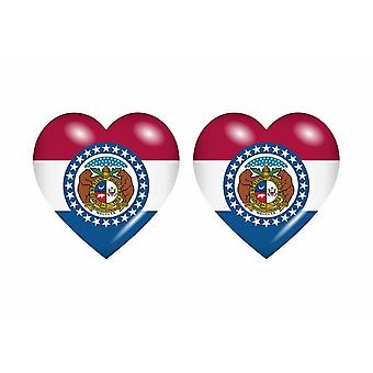 2x Stick sticker flag heart usa missouri