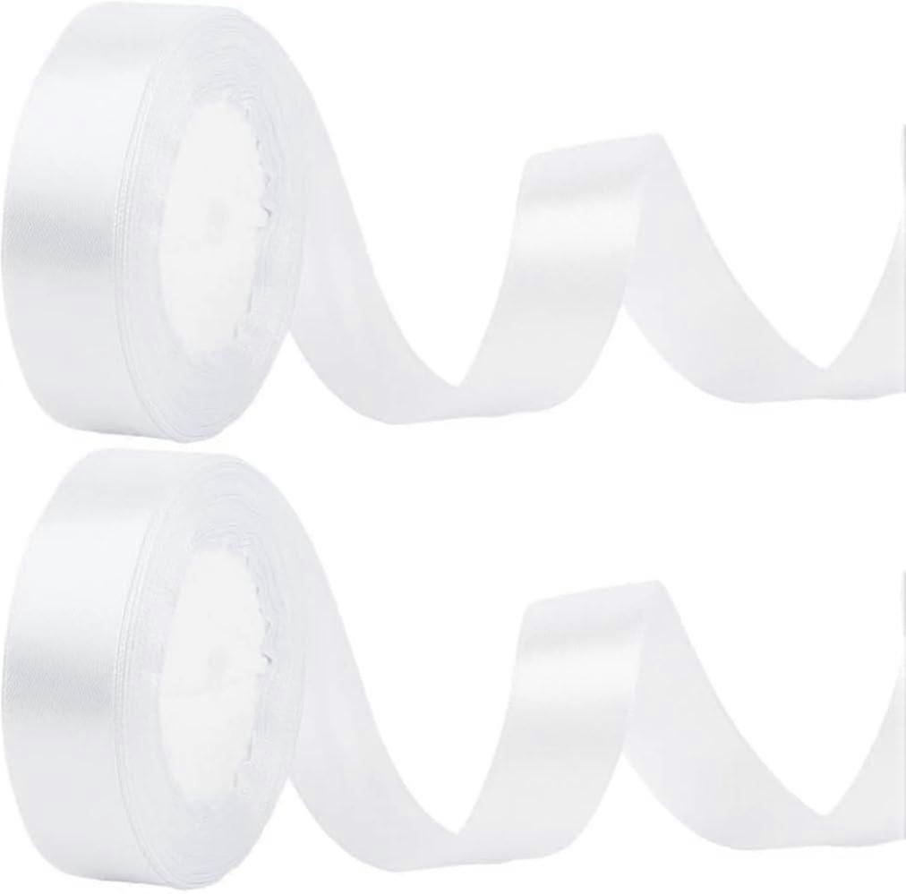 2x22m White Ribbon 25mm For Gift Wrapping,satin Ribbon White Christmas Ribbon Decorative For Crafting Hair Bow Wedding Party Cake Decorations