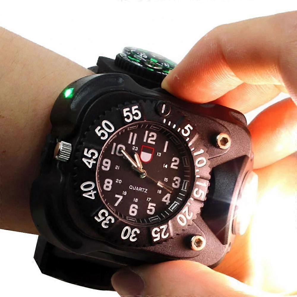 3-in-1 Unisex Watch Waterproof Sports Outdoor Rechargeable Bright LED Flashlight Compass Wrist Watch
