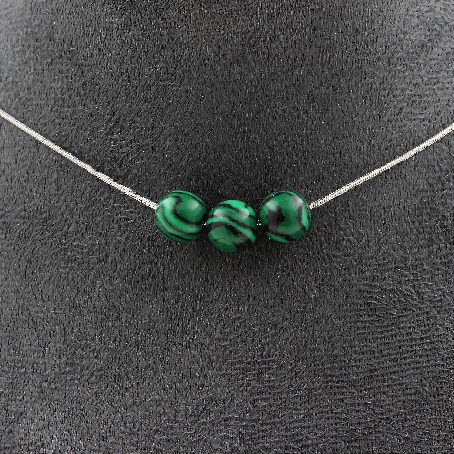 3 Malachite pearl necklace (with resin) 8 mm Stainless steel chain