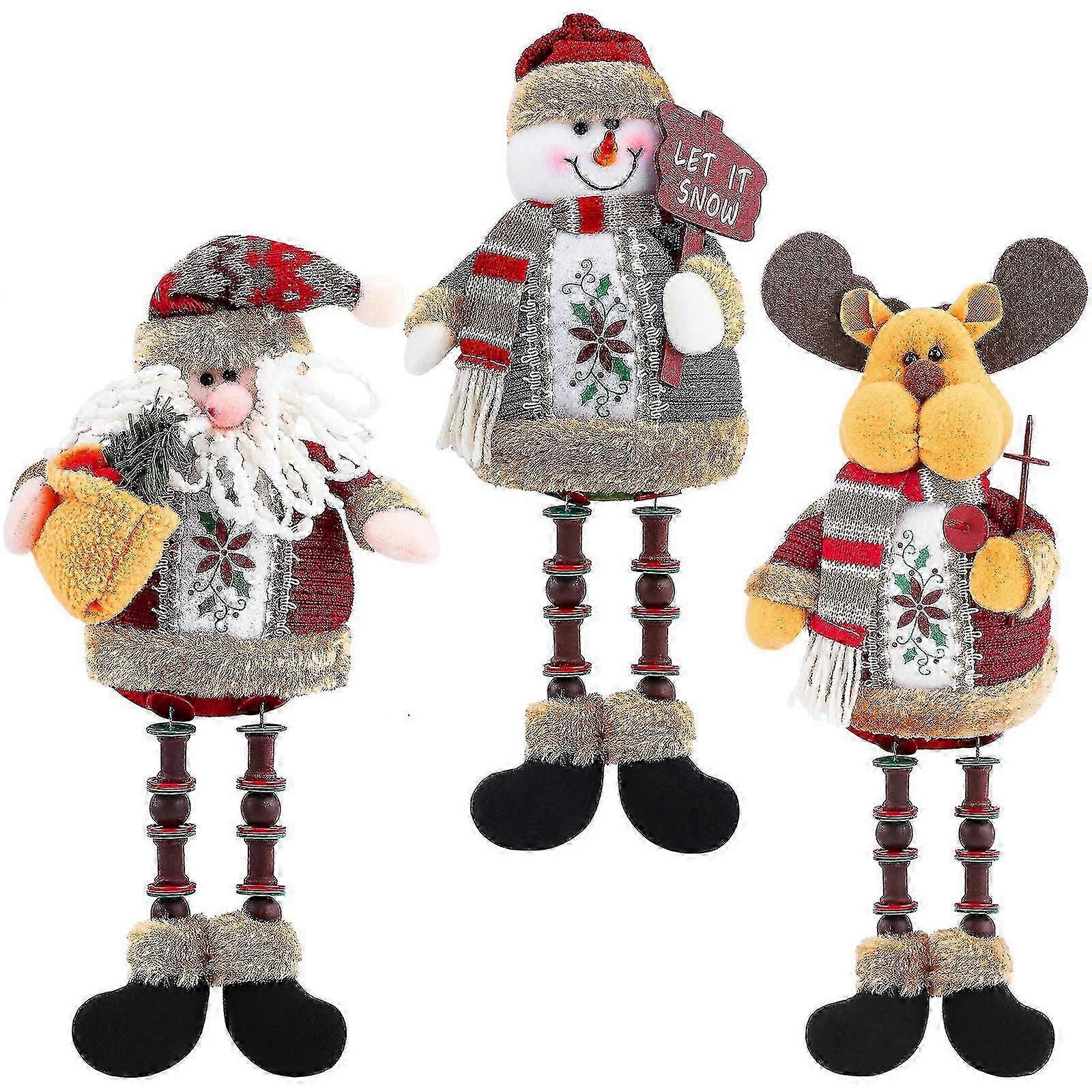 3 Pack Santa Snowman Reindeer Tabletop Collectible Doll Decoration Holiday Party Supplies - ya01