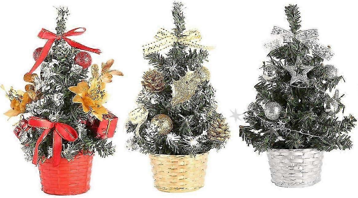 3 Pack Small Christmas Desk Tree Mini Christmas Tree with Base for Desk Table Tops Christmas Decoration