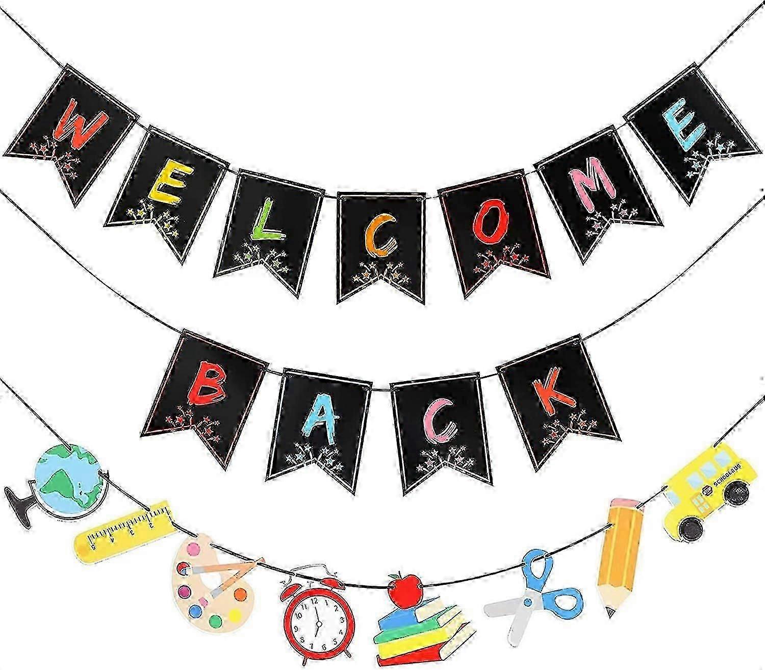 3 Pack Welcomebackbanner Classroom Banner Decorations Welcome Bulletin Board Banner Welcome Chalkboard Brights Pennants For Backtoschool Seasons Scho
