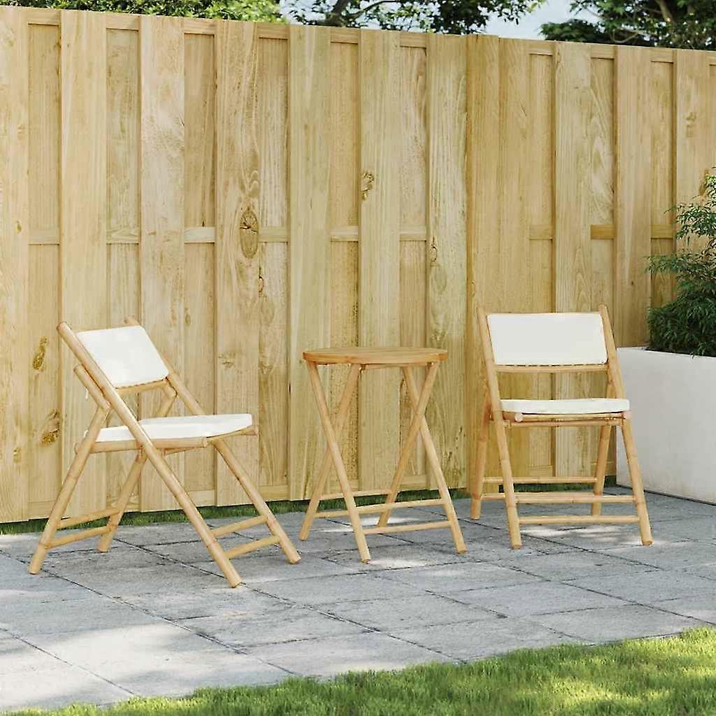 3-tlg. Bistro-Set Klappbar mit Cremeweißen Kissen Bambus
