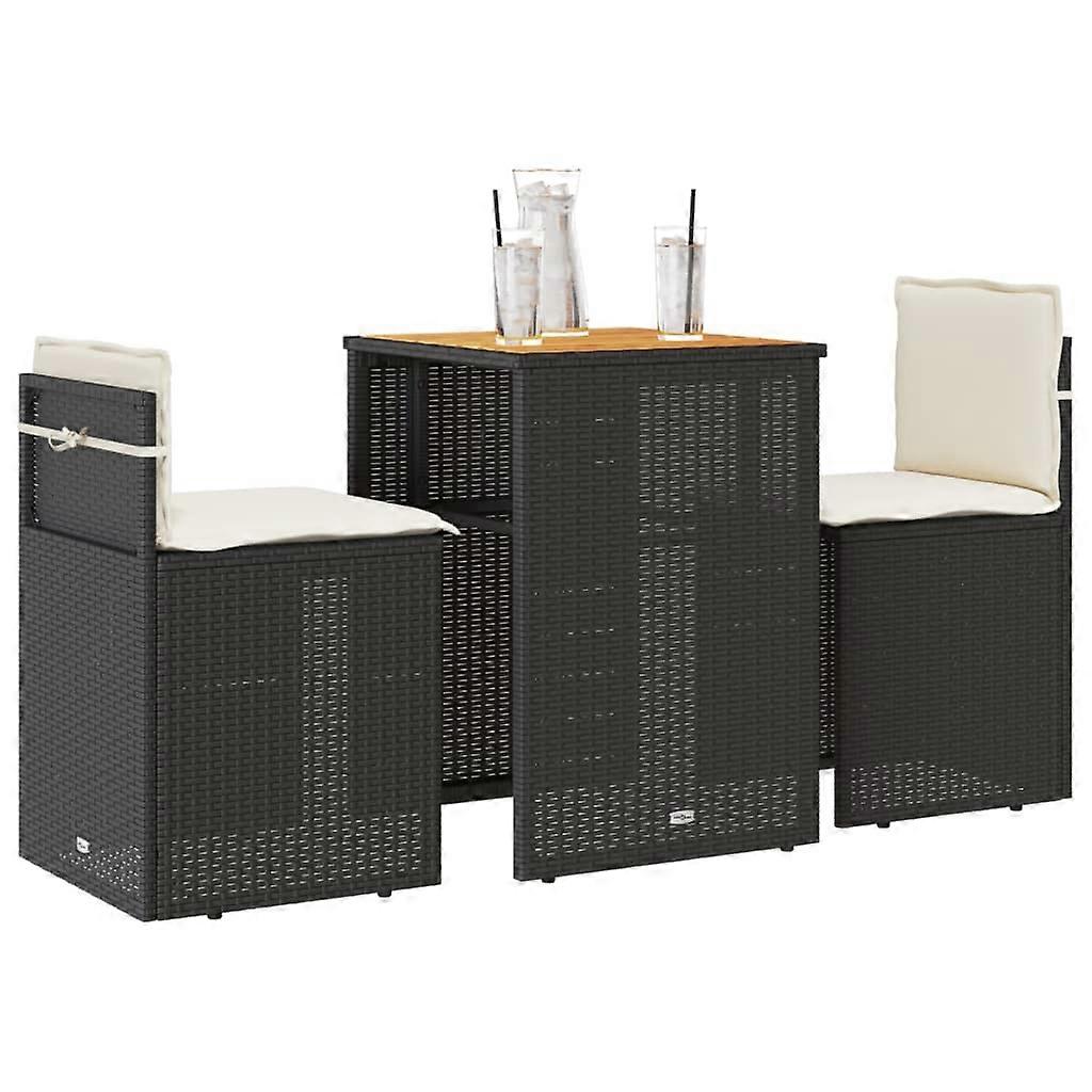 3-tlg. Bistro-Set mit Kissen Schwarz Poly Rattan
