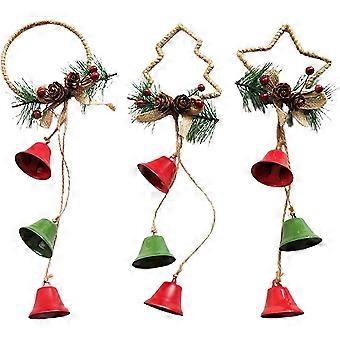 3 Pcs Christmas Bells, Tree Hanging Ornament Metal Jingle Bells with Berry Pinecone for Christmas Holiday Decoration