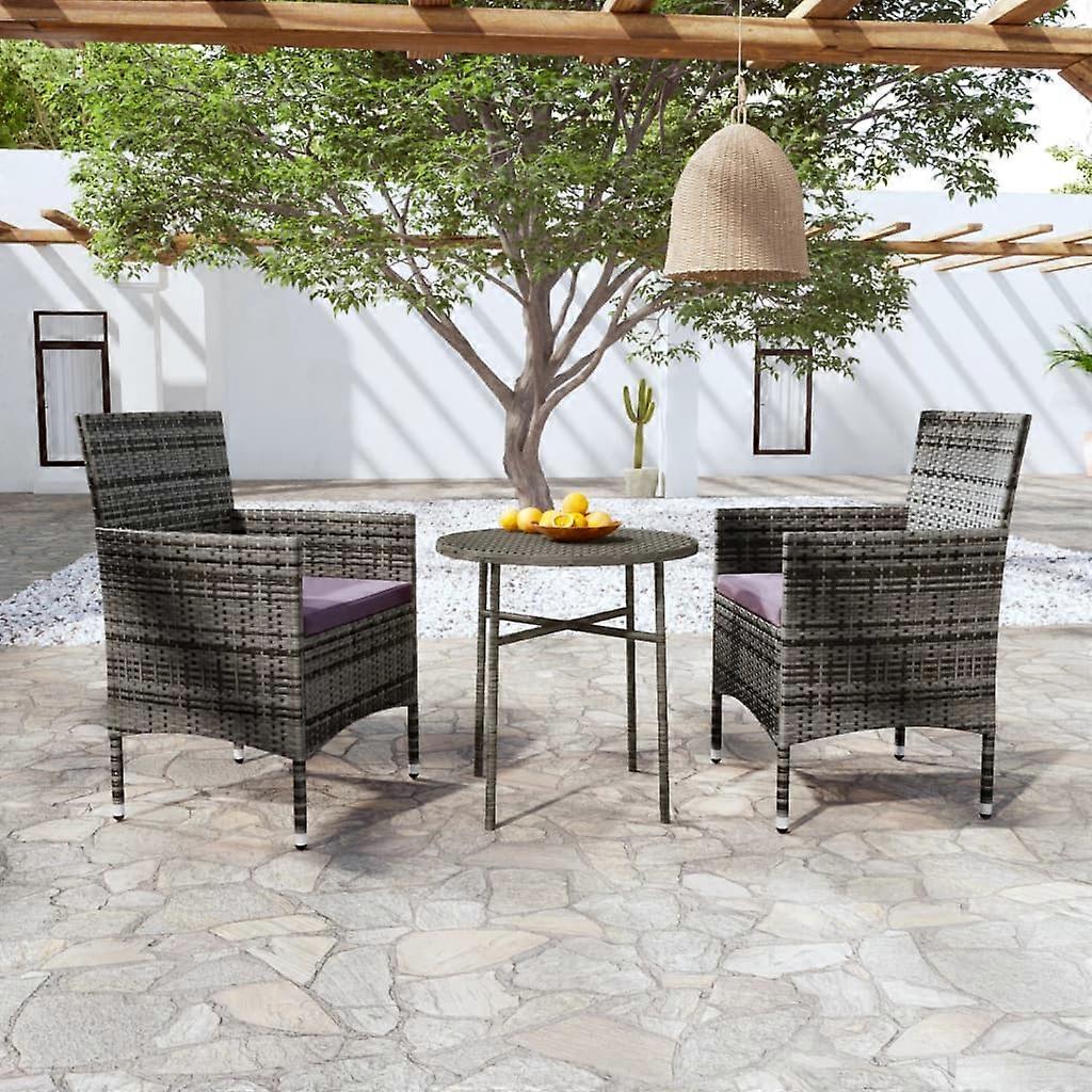 3-tlg. Garten-Essgruppe Poly Rattan Grau