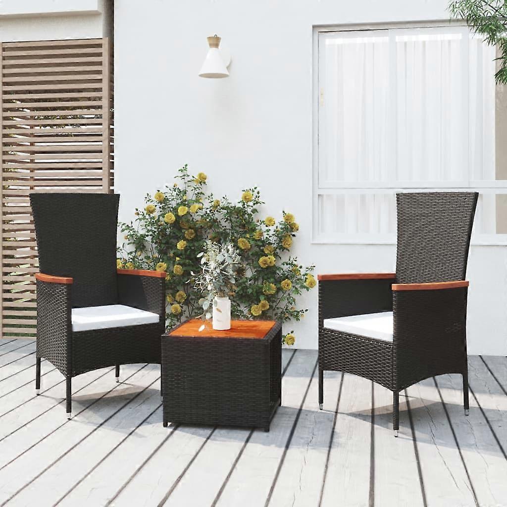 3-tlg. Garten-Lounge-Set Schwarz Poly Rattan Massivholz Akazie