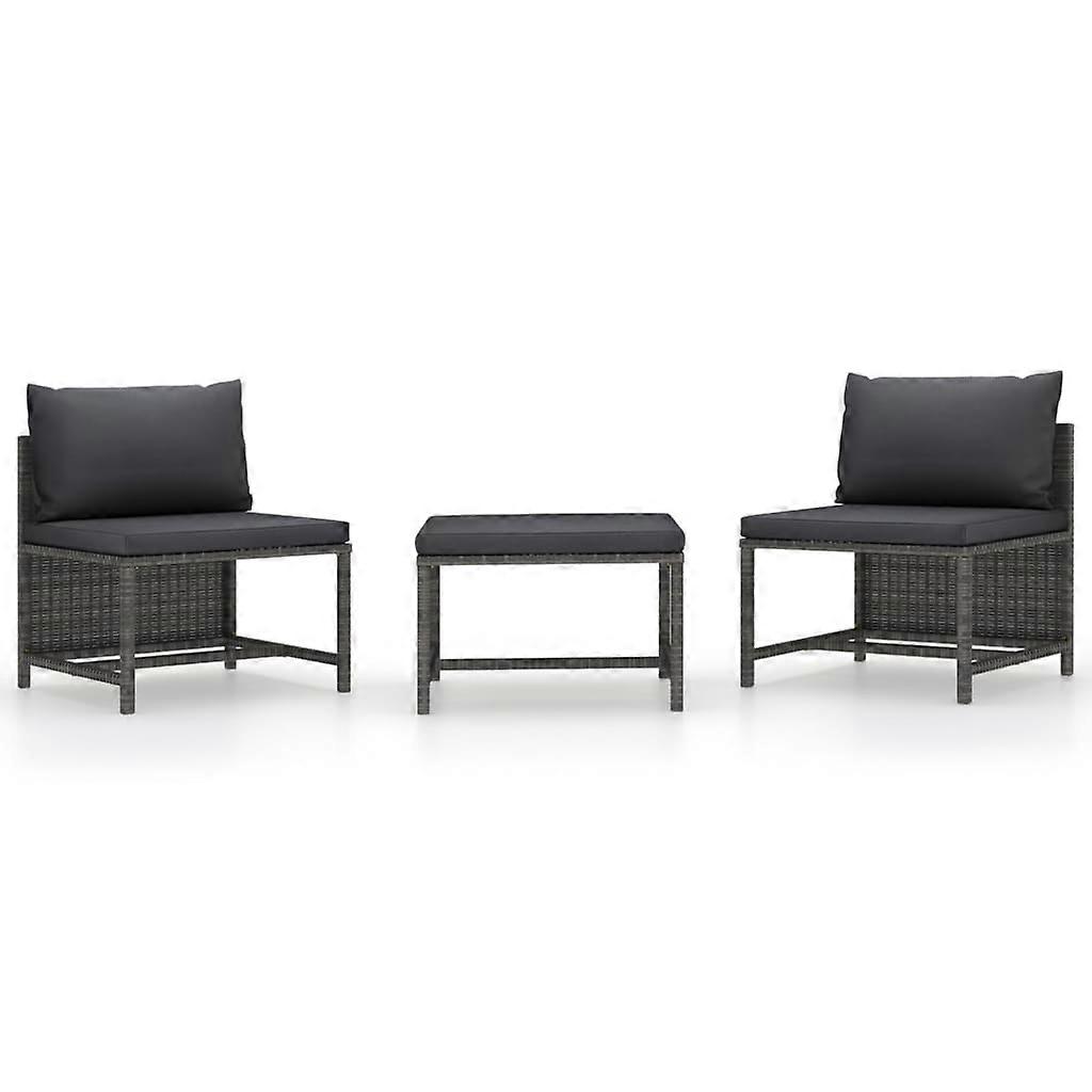 3-tlg. Garten-Sofagarnitur mit Kissen Grau Poly Rattan
