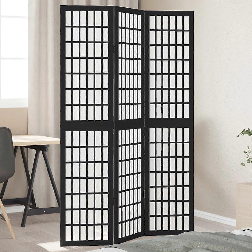 3-tlg. Paravent Schwarz Massivholz Paulownia