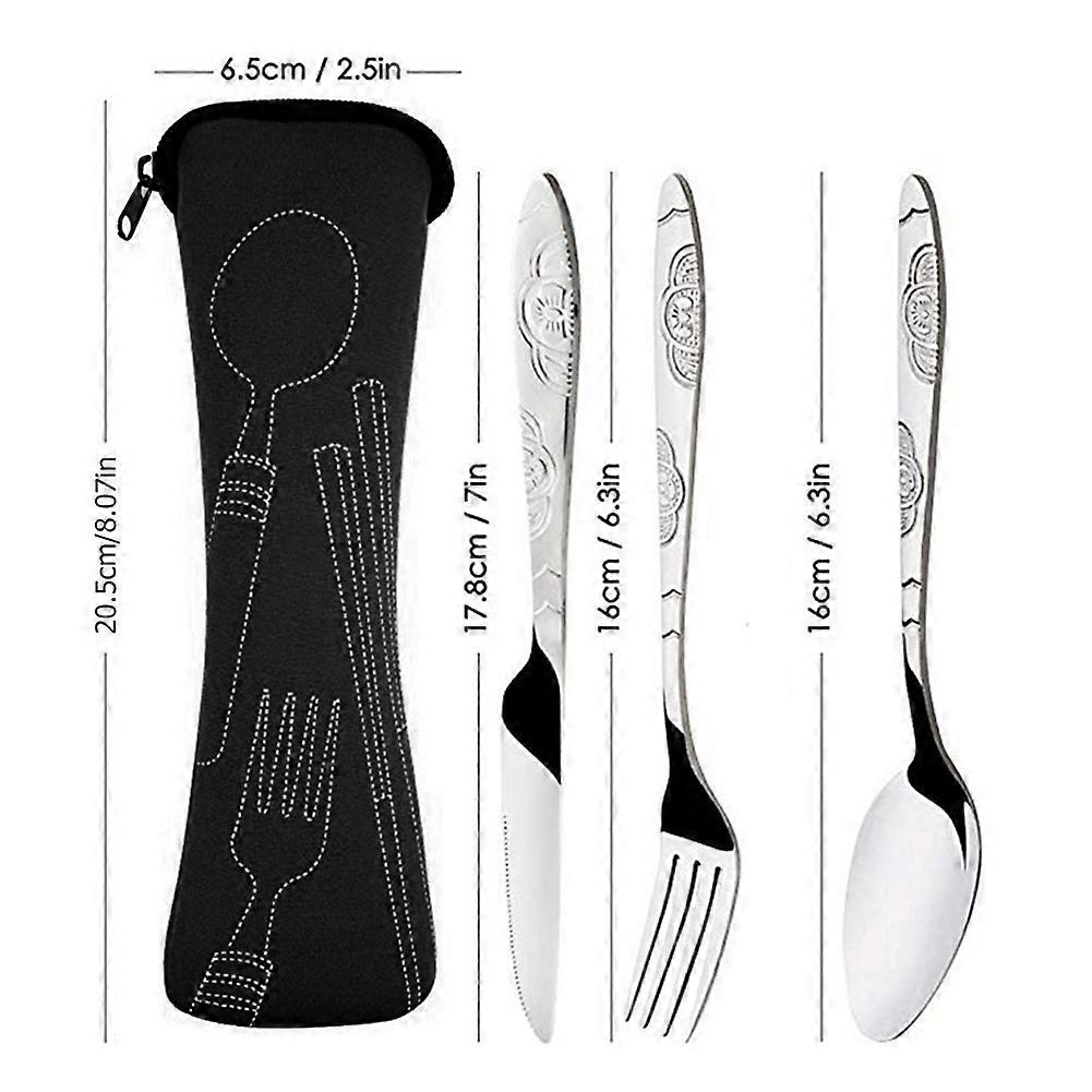 3 pcs. Stainless Steel Western Food Cutlery Set Tableware Sets with Canvas Tea Stirring Bag Tableware Kitchen Accessories