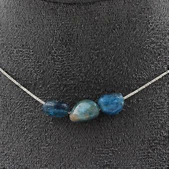 3-pearl necklace Blue Apatite from Brazil Stainless steel chain