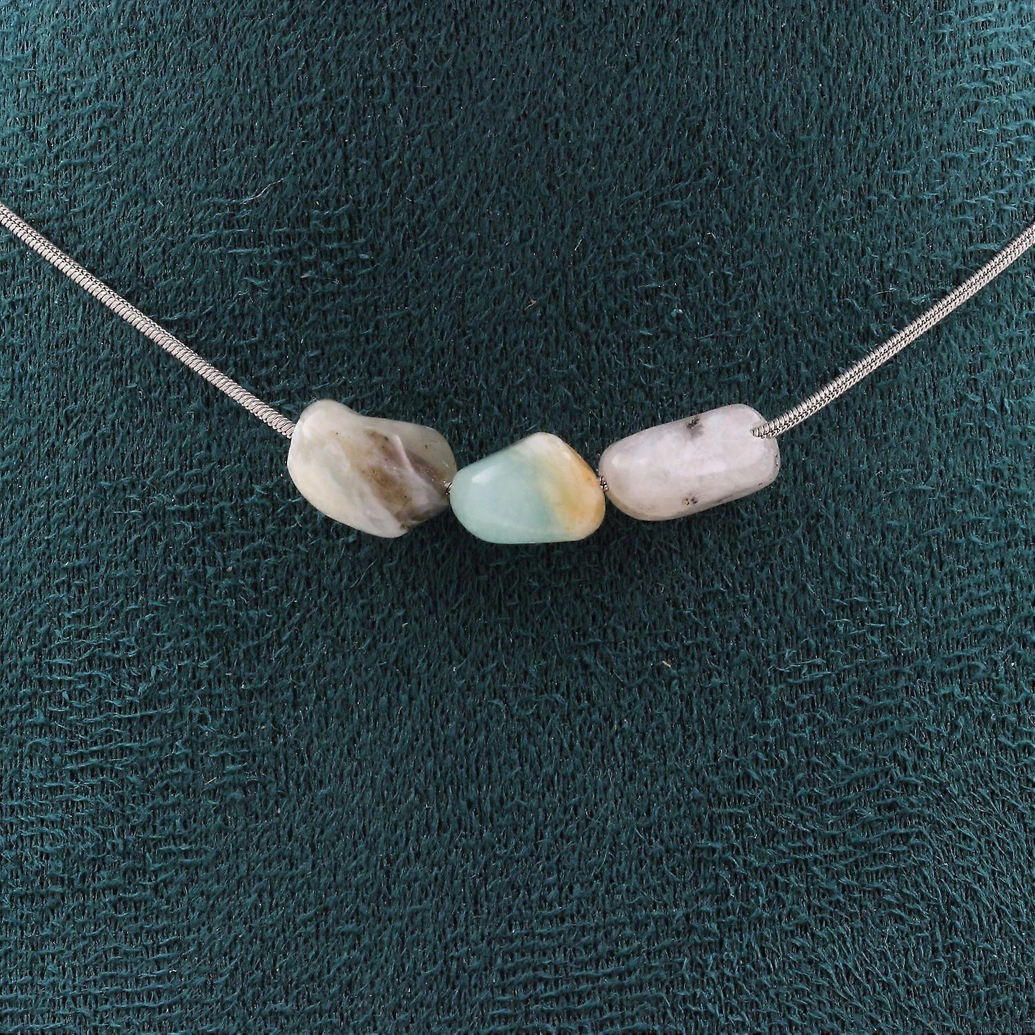 3 pearl necklace Multicolored opal from Australia Stainless steel chain