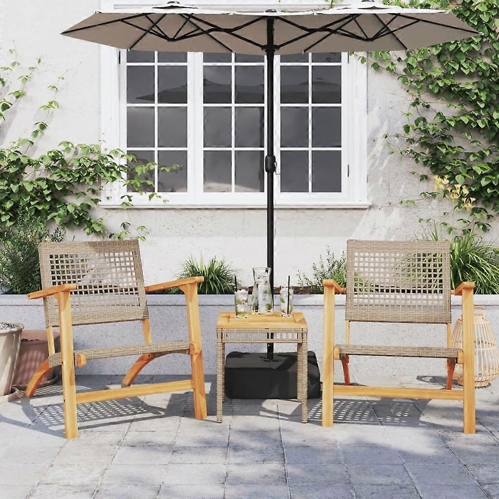 3-tlg. Bistro-Set Beige Poly Rattan und Massivholz Akazie