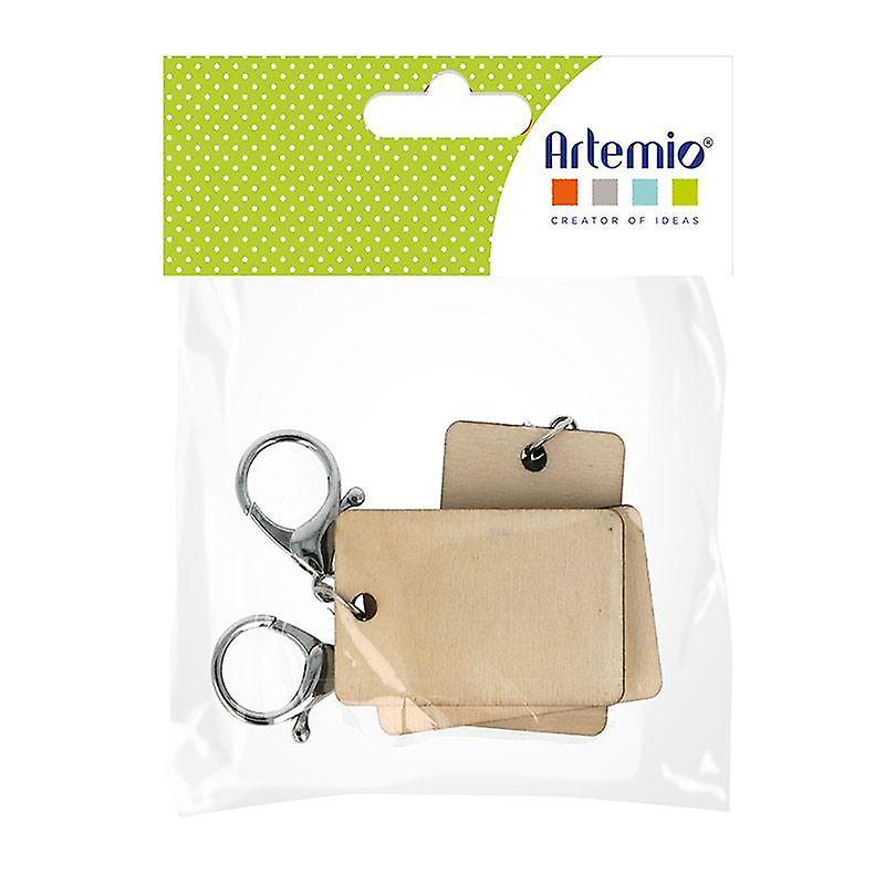 3 Rectangular wooden key rings - 5,5 x 3,5 x 0,5 cm