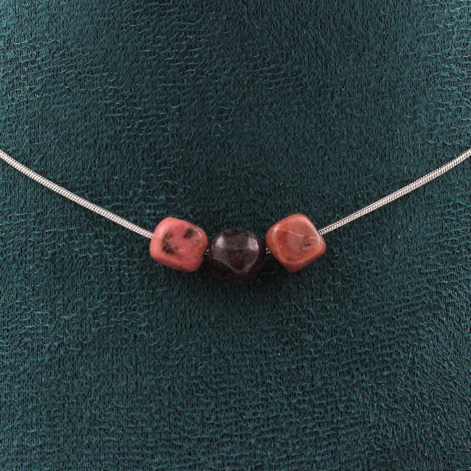3 Rhodochrosite pearl necklace from Brazil Stainless steel chain
